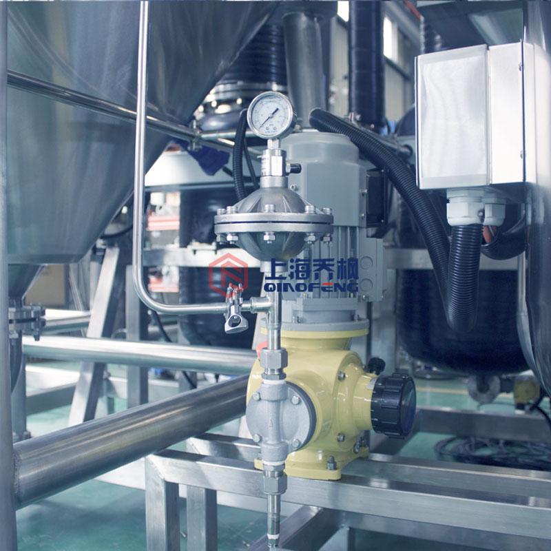 包含:配料罐、溶劑罐、輸料蠕動泵、輸料管路、霧化器,**將配置好的漿料投入配料罐,攪拌均勻后在蠕動泵的驅動下,漿料通過管路閥門到達霧化器,霧化器需要配備上海喬楓特制的防爆霧化器噴頭,噴頭壽命保修使用一年。